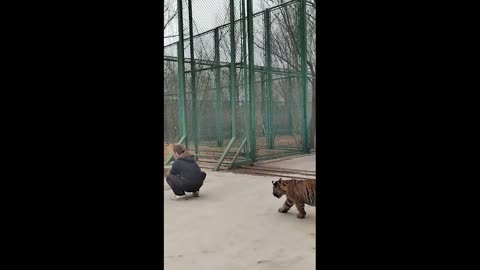 On February 22, 2023, at Linfen Zoo in Shanxi, a young tiger playfully pounced on a woman who seemed familiar with it. O Read more...